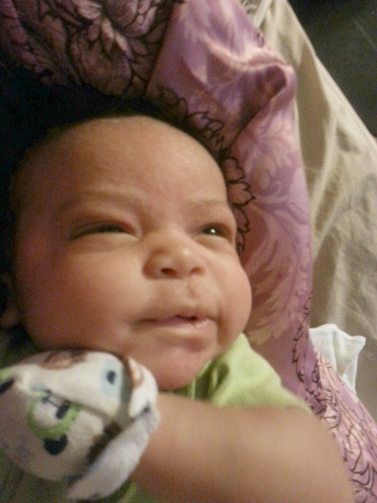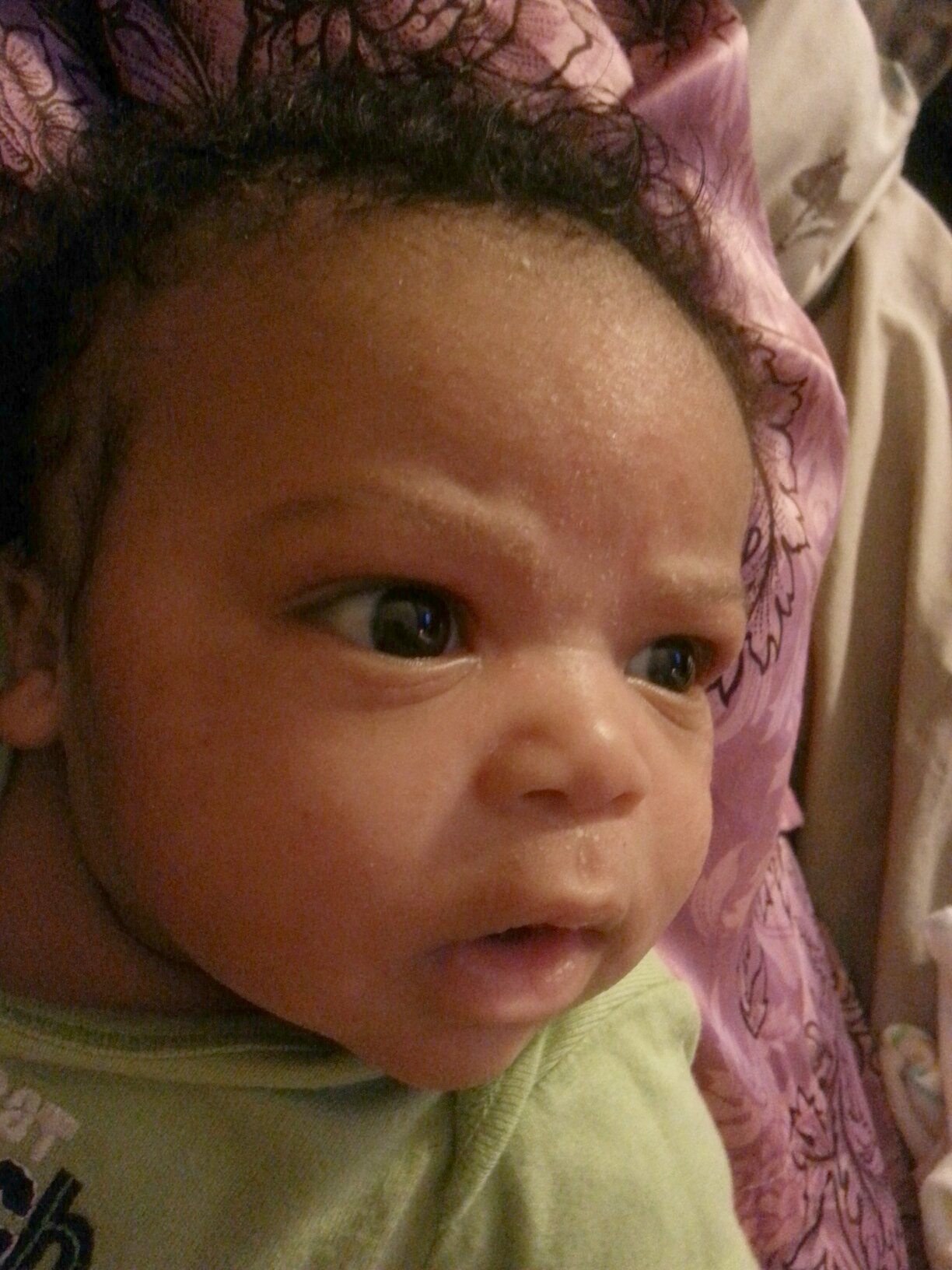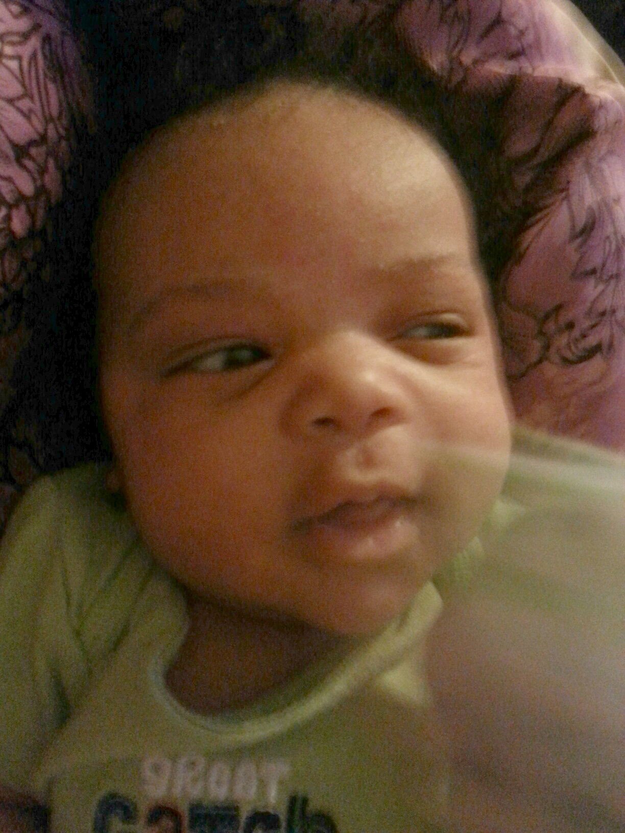 He smiles right before he goes to sleep, which is apparently what all newborns do. I thought babies smiled more than that—experts say they don’t.